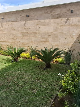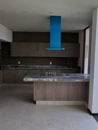 Cocina equipada con parrilla, campana extractora, horno de gas, microondas y lavavajillas.